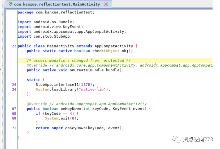 oncreate 直接是 native 化了 应该是 360 的 vmp, 这里肯定不是让你逆 360 的 vmp, 盲猜一波就是 check 方法, 先 hook 一下.